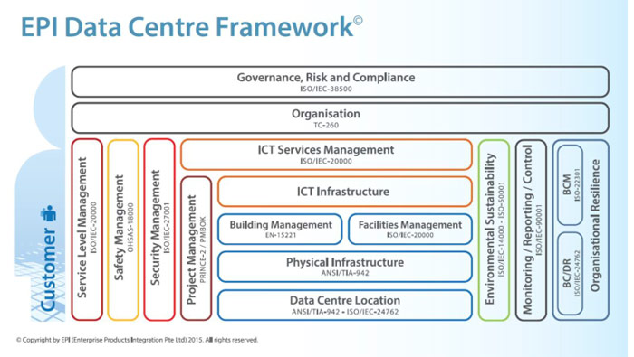 EPI 數(shù)據(jù)中心框架(EPI Data Center Framework)為數(shù)據(jù)中心的投資方、所有者、運(yùn)營(yíng)方提供了一套數(shù)據(jù)中心生態(tài)系統(tǒng),涵蓋了全面管理的結(jié)構(gòu)化數(shù)據(jù)中心的所有科目。這套 EPI 數(shù)據(jù)中心框架不僅介紹數(shù)據(jù)中心位置選擇、實(shí)體設(shè)備設(shè)計(jì)和配備,還說(shuō)明了管理內(nèi)容及根據(jù)客戶的業(yè)務(wù)需求進(jìn)行數(shù)據(jù)中心組織和運(yùn)營(yíng)所需的全部流程。
